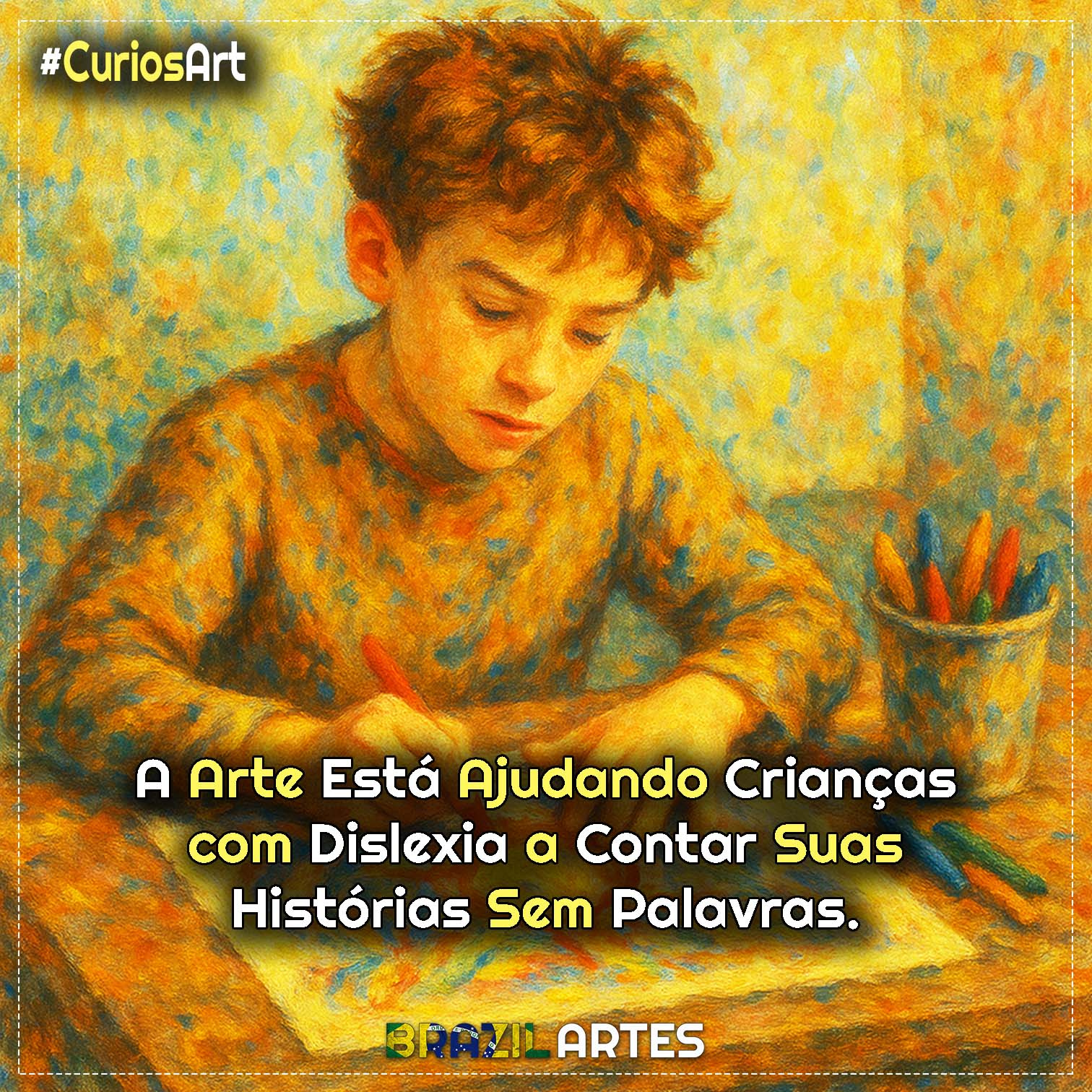 Nem toda história precisa de letras. Para muitas crianças com dislexia, o mundo das palavras pode ser um labirinto difícil de atravessar. Mas quando lápis de cor, tintas e papéis entram em cena, algo muda: elas ganham voz — uma voz visual, emocional, sincera.