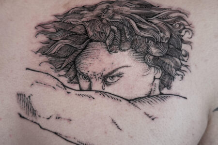 Julio Lisboa não é apenas um tatuador talentoso; ele é um artista que redefine os limites da tatuagem. Seu estilo se baseia na técnica de hachura, usada em gravuras clássicas, e seu traço remete às ilustrações renascentistas.