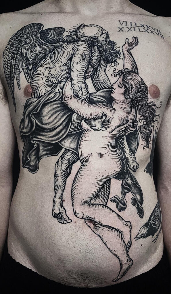 A exposição “Dürer Under Your Skin” é uma homenagem ao renomado artista renascentista Albrecht Dürer, conhecido por suas gravuras, pinturas e inovações técnicas. O evento reúne tatuadores do mundo todo que criaram releituras de obras de Dürer aplicadas na pele.