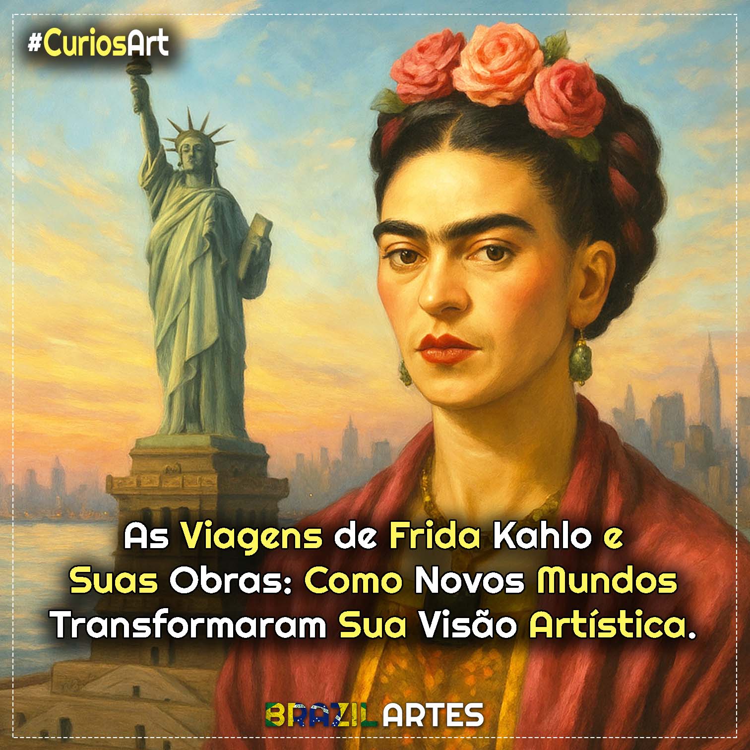 Frida Kahlo provou que não há fronteiras para a arte quando ela nasce de verdade. E é justamente nesse cruzamento entre dor, cor, raízes e descobertas que sua obra segue nos lembrando: olhar para fora é também um modo de mergulhar ainda mais fundo em si mesma.