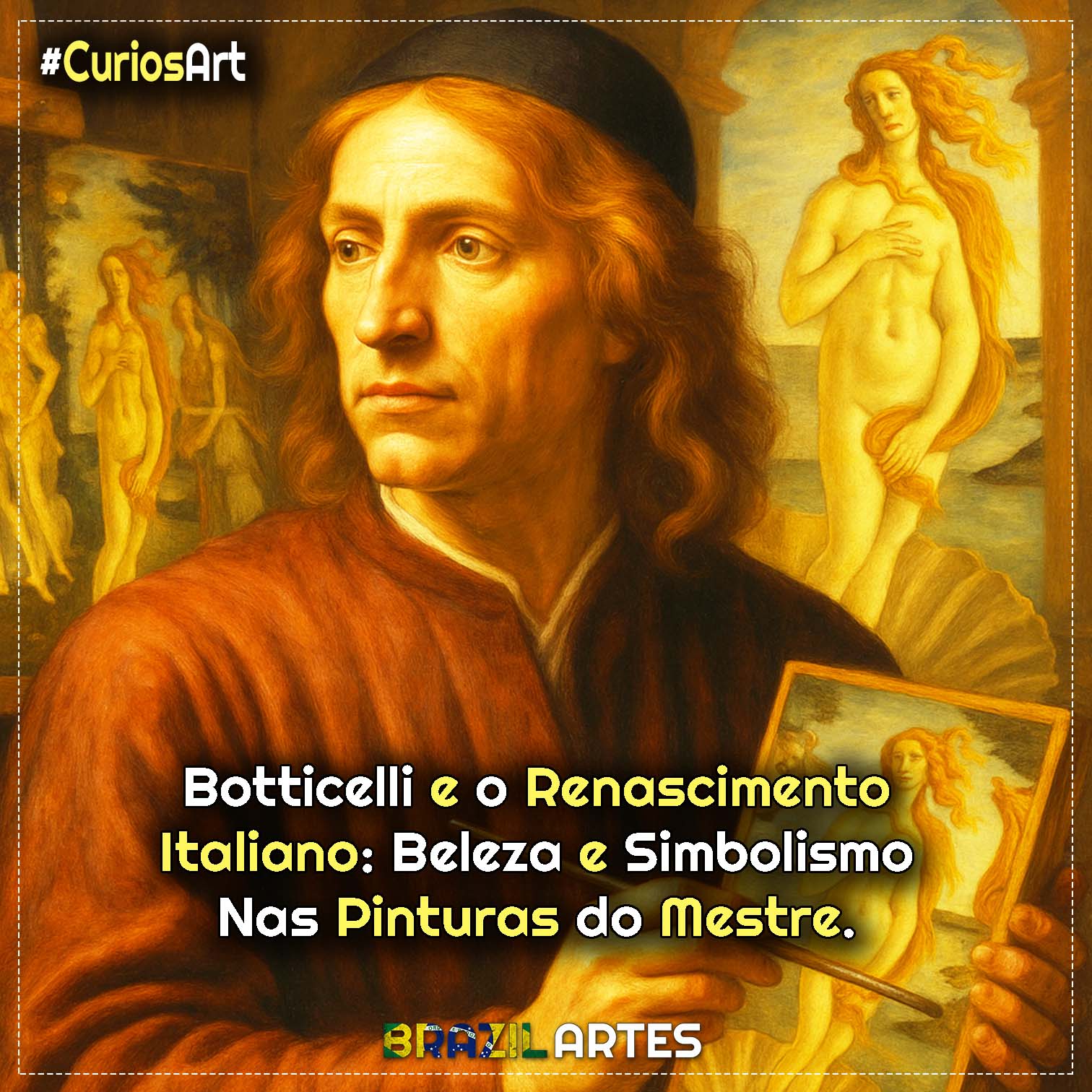 - Botticelli acreditava que a beleza tinha um poder espiritual — suas figuras eram idealizadas e etéreas. ✨