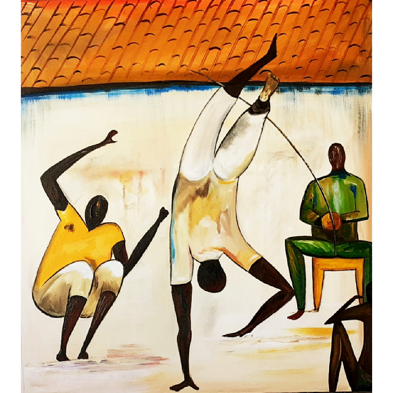 Pintado por Cleber Souza, este acrílico sobre tela é uma homenagem à energia, à história e à beleza da capoeira, refletida através de uma releitura das obras de Carybé.