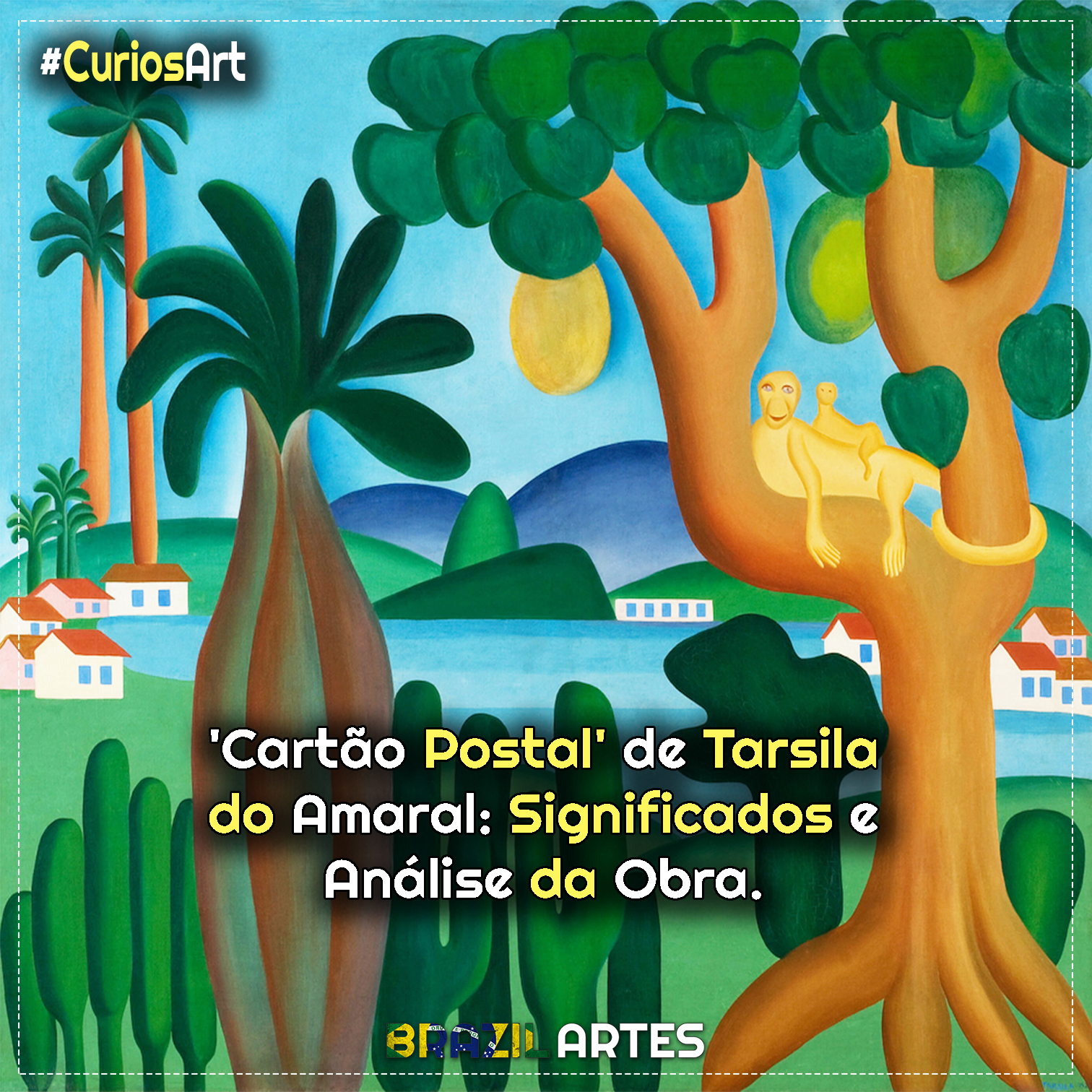1- ‘Cartão Postal’ foi pintada durante um período de intensa criatividade para Tarsila do Amaral, quando ela estava profundamente envolvida com o movimento modernista e a filosofia antropofágica.