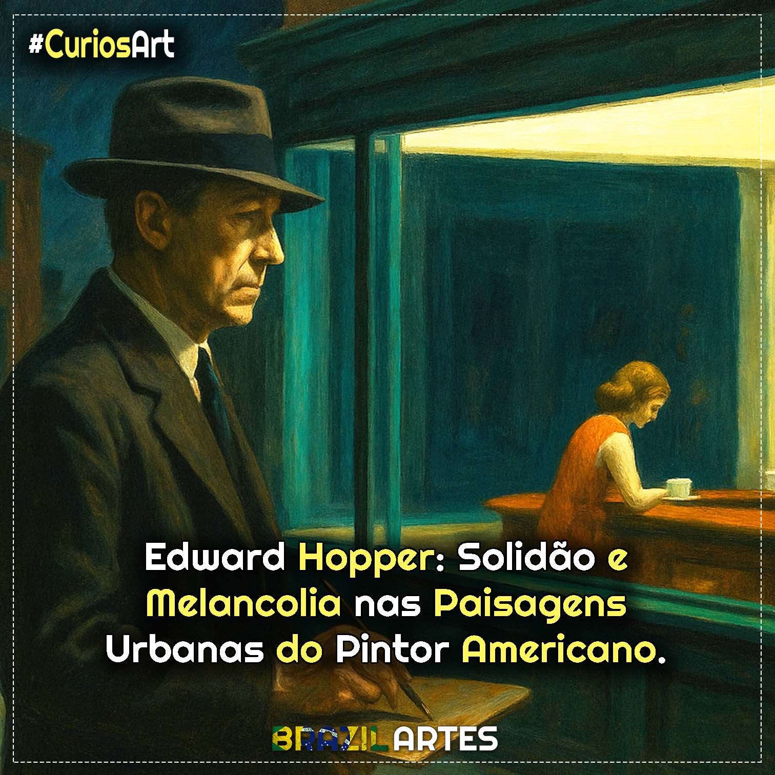 Nascido em Nyack, no estado de Nova York, Hopper formou-se na New York School of Art, sob a orientação de Robert Henri, defensor de uma arte honesta e humana. Levou essa lição ao extremo. Suas figuras não posam: esperam. São personagens do cotidiano que habitam cafeterias, quartos de hotel, escritórios e janelas iluminadas. Nenhum deles fala — mas todos dizem muito.