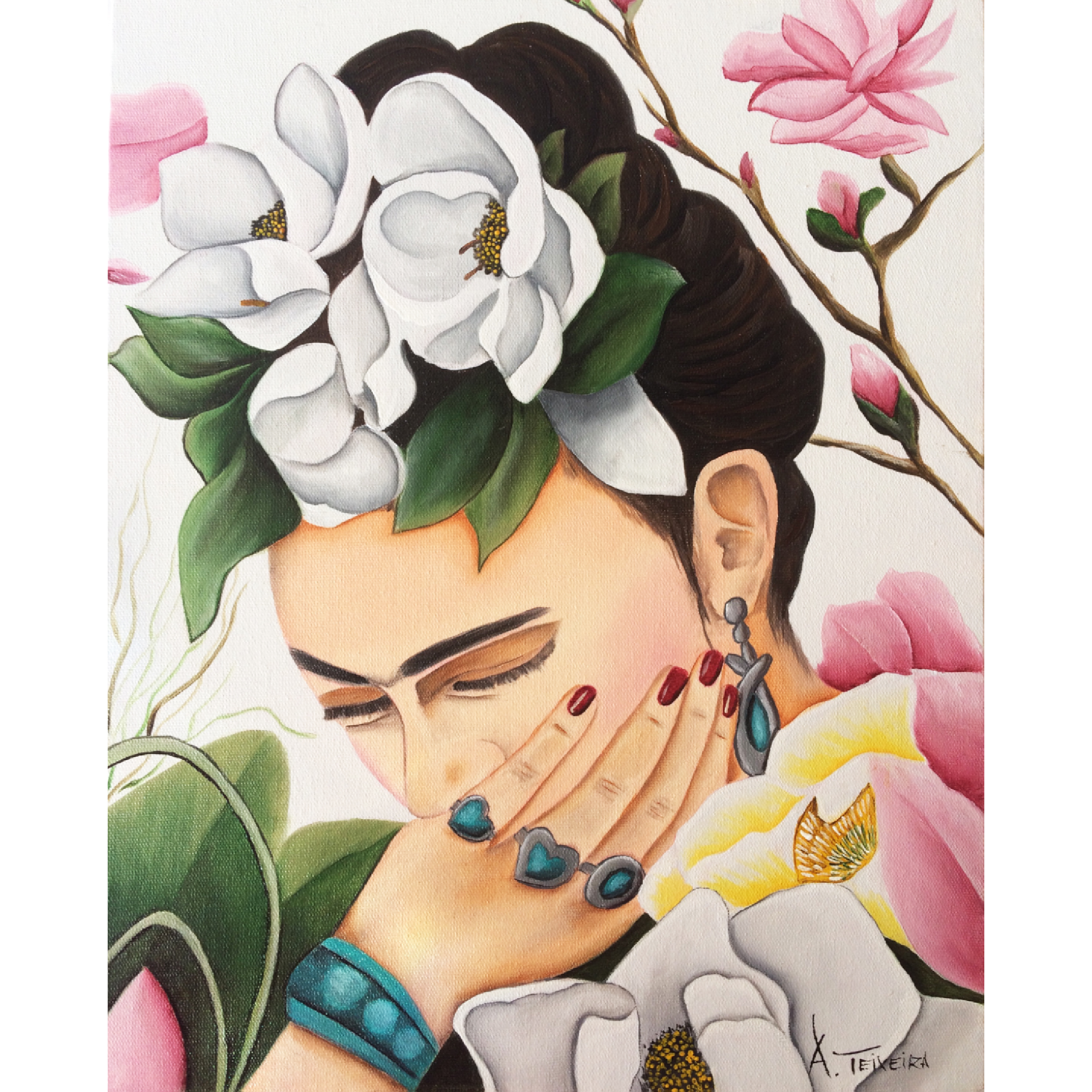 Adriana Teixeira, a renomada artista paulista, nos presenteia com uma obra de arte que presta homenagem a uma das figuras mais icônicas da história da arte, Frida Kahlo. Na pintura “Frida Kahlo”, somos levados a uma visão cativante de Frida, onde sua força, beleza e personalidade única são celebradas.