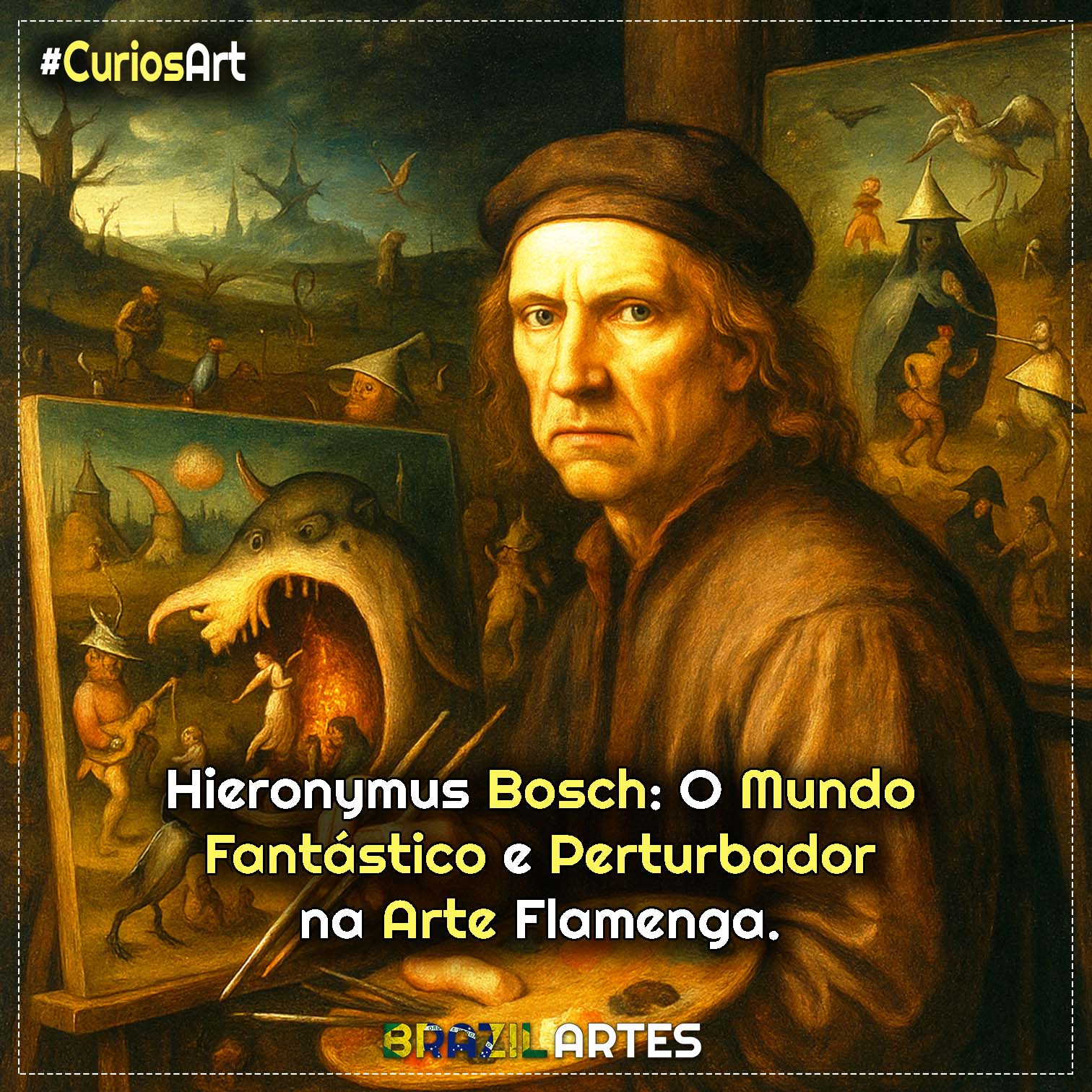 Hieronymus Bosch foi um pintor flamengo do século XV conhecido por cenas cheias de monstros, infernos e alegorias morais. Sua combinação de religiosidade medieval, imaginação fantástica e símbolos ambíguos faz dele um dos artistas mais enigmáticos da história da arte.
