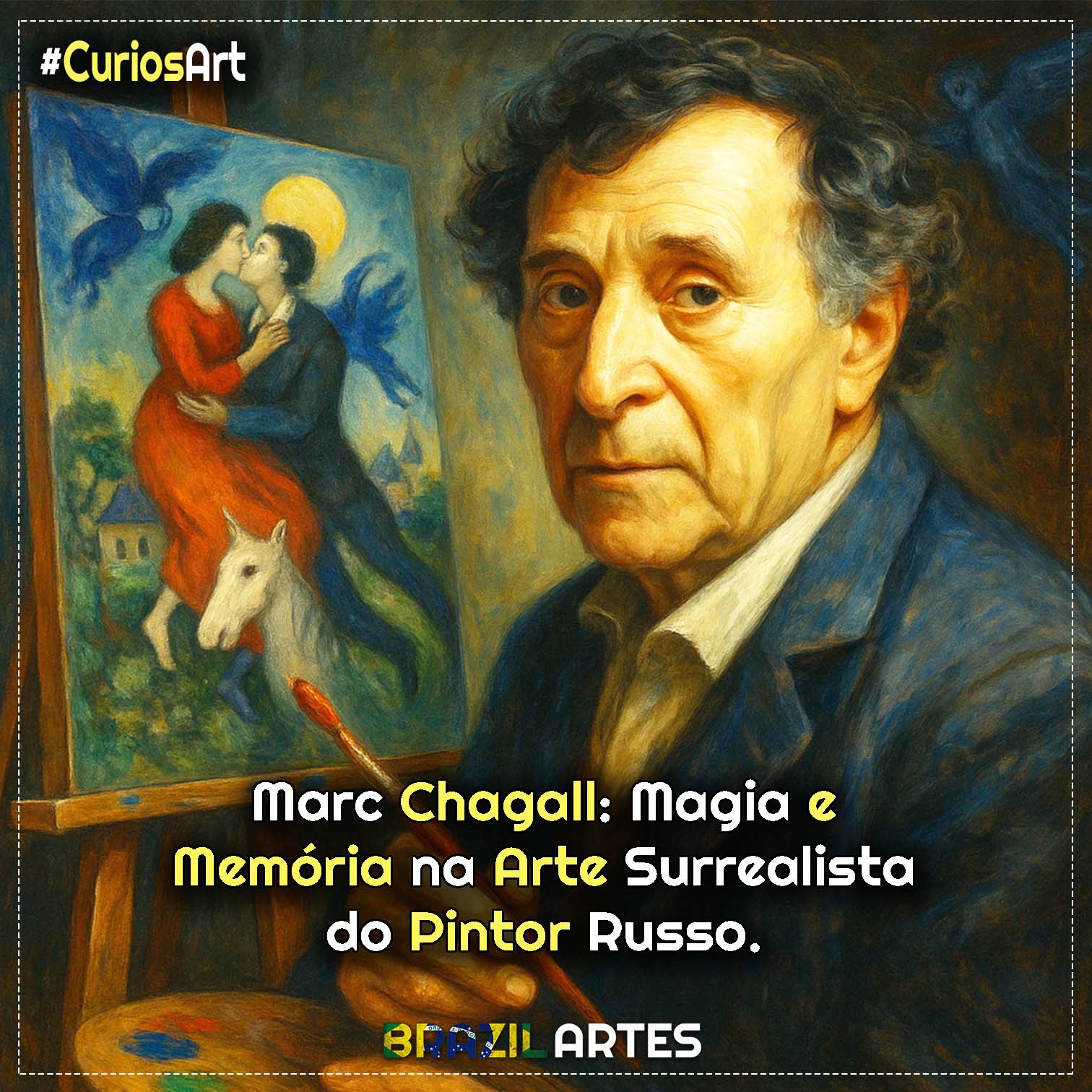 Chagall ensinou que a arte pode ser luz, fé e ternura — um encontro entre sonho e realidade, onde cada cor é uma oração pela beleza da vida.
