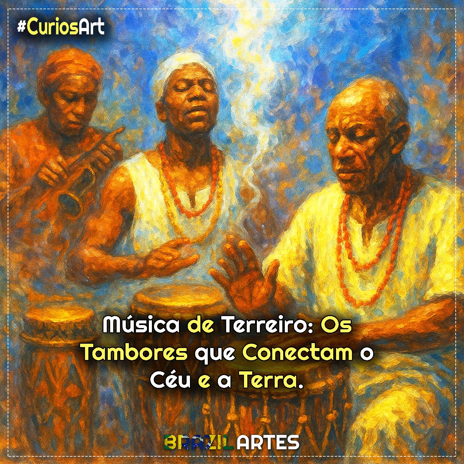 Porque cada canto, ritmo e batida carrega intenção espiritual, invoca forças sagradas e conecta os praticantes com os orixás e guias. A música é uma prece em movimento e som.