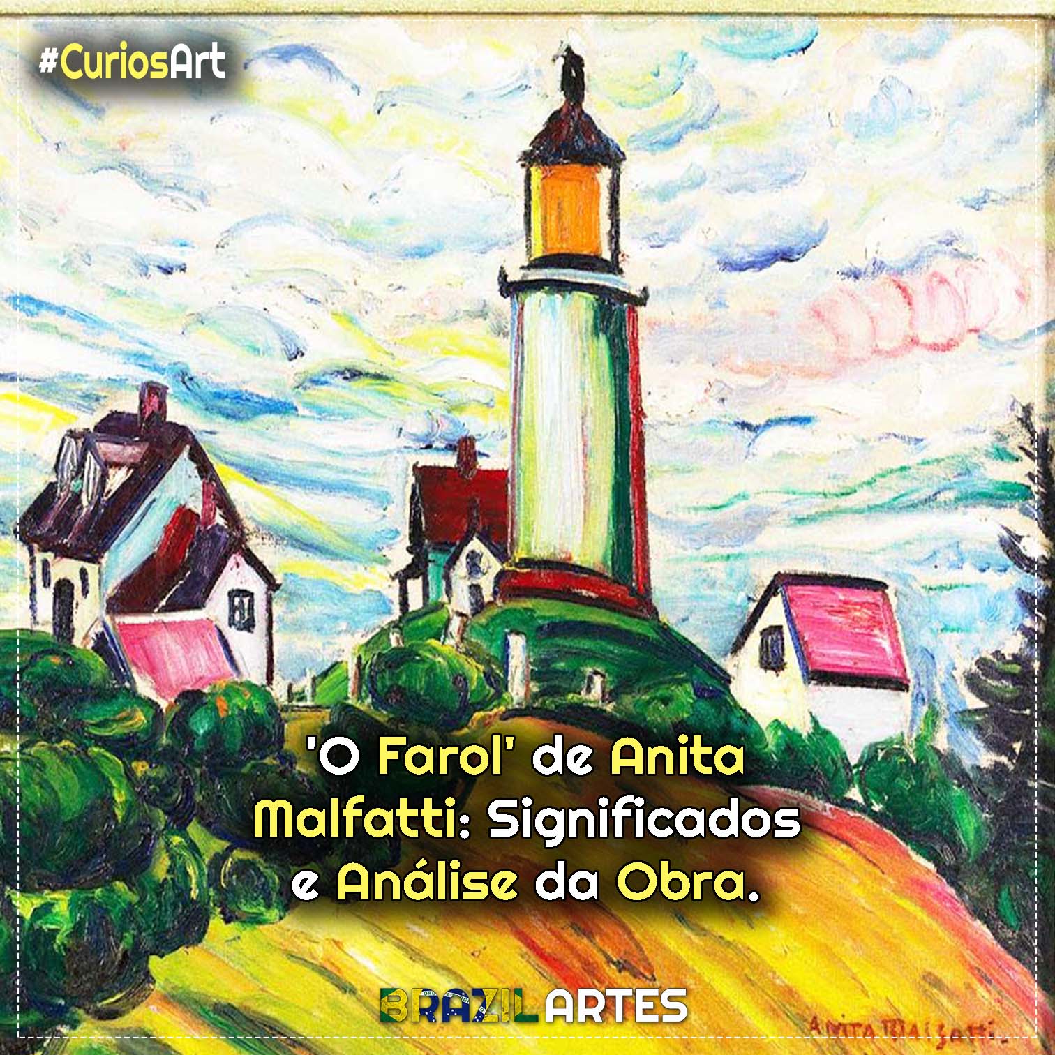 Ao contemplar O Farol, percebemos que Anita Malfatti não queria apenas retratar uma paisagem americana. Ela queria revelar, em cor e gesto, uma nova maneira de ver o mundo — mais intuitiva, mais intensa, mais moderna. Pintada em 1915, a obra condensa experiências internacionais, influências expressionistas e liberdade gestual adquirida nos Estados Unidos. Mas, acima de tudo, condensa a própria artista, que buscava firmeza em meio às transformações de seu tempo.