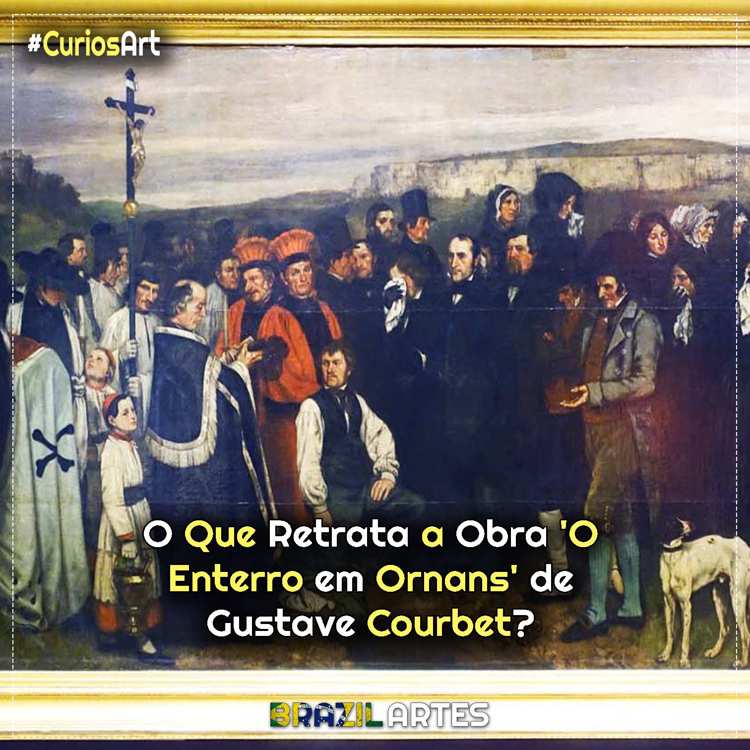 O que o quadro retrata, de forma objetiva, é um enterro realizado ao ar livre na cidade de Ornans, na região da Franche-Comté, interior da França. A cerimônia acontece em um terreno irregular, com falésias ao fundo e céu pesado, sem qualquer idealização paisagística.