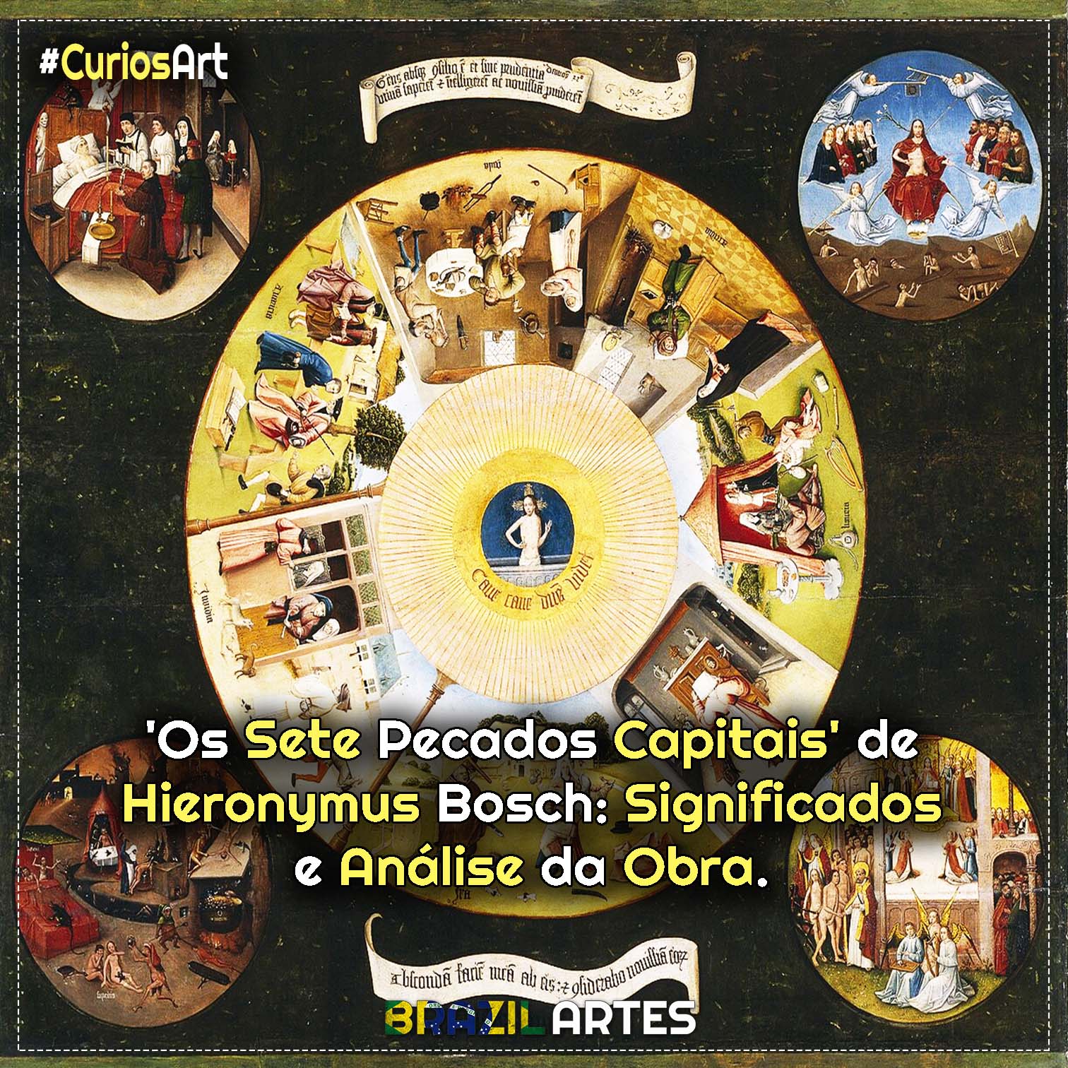 Os Sete Pecados Capitais foram pintados por Hieronymus Bosch, artista conhecido por sua crítica moral, simbolismo complexo e observação rigorosa da sociedade do final da Idade Média.