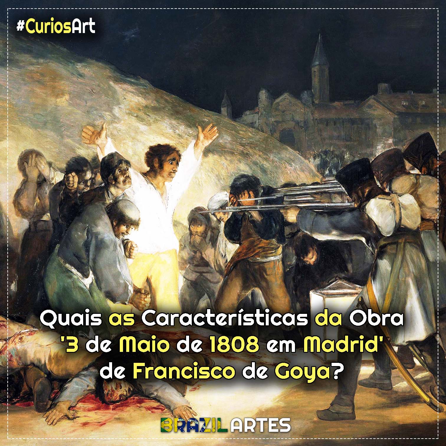 Nada nesta obra é neutro. Cada escolha de Francisco de Goya em 3 de Maio de 1808 em Madrid carrega intenção, tensão e tomada de posição. Aqui, as características não são apenas técnicas ou estéticas — elas são éticas. A pintura não busca equilíbrio, beleza clássica ou clareza narrativa. Ela busca impacto, confronto e memória.