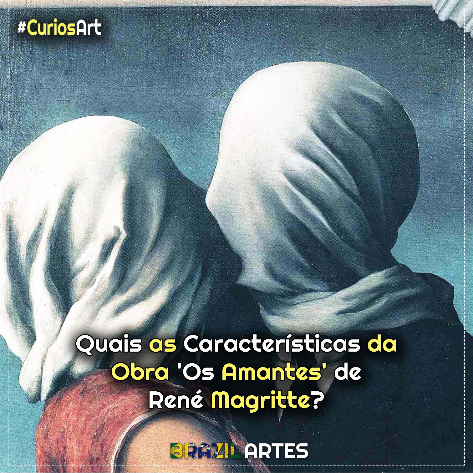 Duas figuras se aproximam. Ombros inclinados, postura íntima, a promessa de um beijo. Mas o que deveria ser um gesto de afeto é impedido por panos brancos que cobrem seus rostos, transformando o momento mais humano em um enigma inquietante. Assim nasce Os Amantes, pintado por René Magritte em 1928, uma obra que parece simples à primeira vista, mas que esconde camadas profundas de significado e estranhamento psicológico.