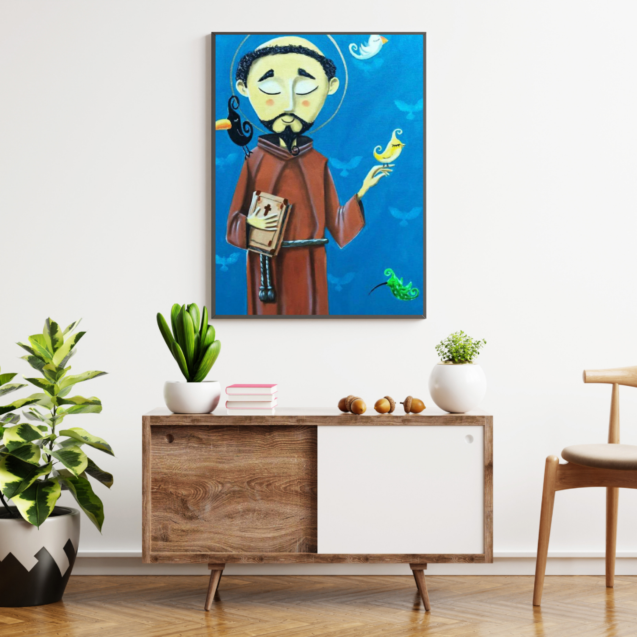 A obra de Lopes, disponível por encomenda, é mais do que uma representação; é um lembrete visual e um chamado à ação para viver uma vida de simplicidade, para encontrar beleza na humildade e para amar sem reservas. São Francisco de Assis é retratado não apenas como um santo da Igreja Católica, mas como um ícone atemporal de harmonia e equilíbrio com o mundo ao nosso redor.