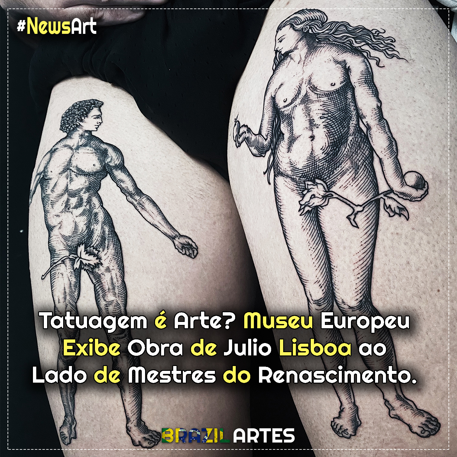 Mais de 300 tatuadores de diferentes países enviaram suas releituras baseadas nas obras de Dürer. Entre os poucos selecionados, Julio Lisboa se destacou com sua interpretação tatuada da icônica ilustração “Adão e Eva” (1507).