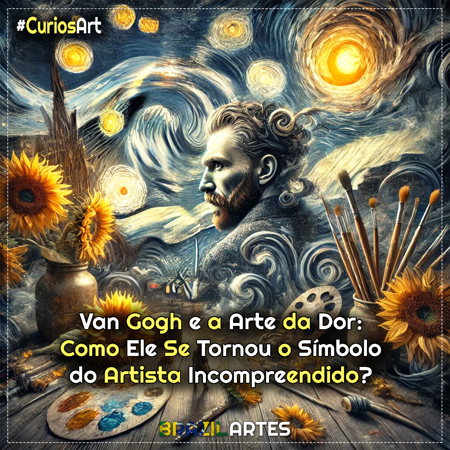 Rejeitado em vida, incompreendido por seus contemporâneos e atormentado por crises psicológicas, Van Gogh usou a pintura como refúgio. Sua história se tornou um símbolo do artista incompreendido — aquele cujo talento só é reconhecido após a morte.